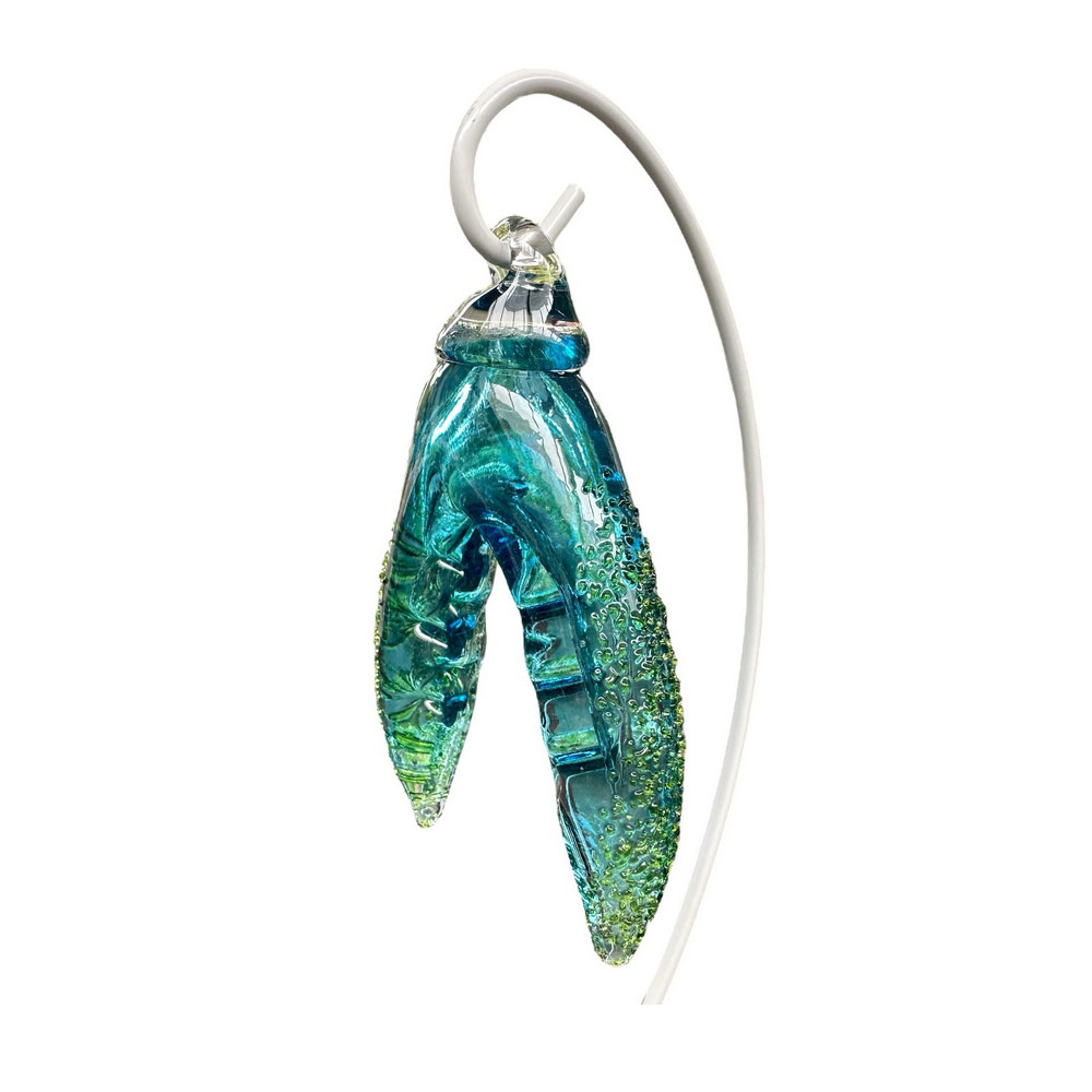 Vibrant and eye catching, this hand blown and sculpted crab claw makes an unusual hanging decoration. Why not add them to a seaside scene or collect several and make a salty chandalier.